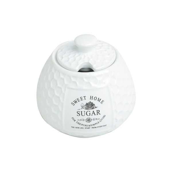 Produzido em cerâmica de alta qualidade, com acabamento branco e textura em alto-relevo, esse açucareiro traz o charme do estilo retrô com a frase "Sweet Home" estampada, perfeito para decorar mesas, bandejas ou cantinhos do café.