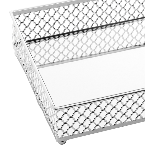 - Fácil de Limpar: A superfície espelhada e o metal são fáceis de manter e limpar, mantendo sua bandeja sempre impecável.