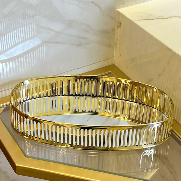 A Bandeja de Metal com Espelho Lyor - Berlin une requinte e funcionalidade, tornando-se um item indispensável para quem deseja um ambiente sofisticado e organizado.
