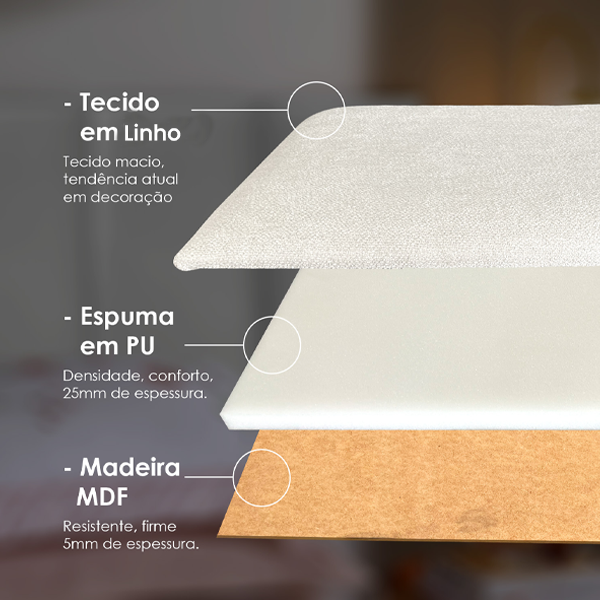 Transforme seu quarto em um refúgio de elegância e aconchego com a Cabeceira Bella Arte de Linho. Além de enriquecer a estética do ambiente, ela proporciona o conforto que você merece. Perfeita para quem busca sofisticação e qualidade, esta cabeceira é a escolha ideal para renovar qualquer quarto de solteiro, casal ou queen.