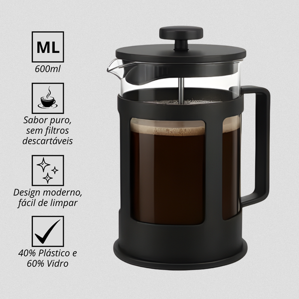 - Capacidade de 600ML: Perfeita para preparar várias xícaras de café de uma só vez.