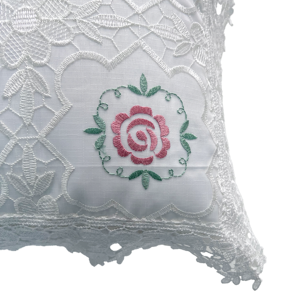 Transforme sua casa em um lar cheio de estilo e aconchego com a Capa de Almofada Jolitex Renda Branco com Rosas e Folhas Verdes.