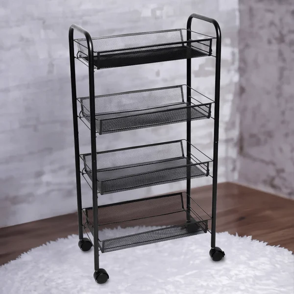 Leve organização e praticidade para o seu dia a dia com o Carrinho Organizador New York! Com design moderno e quatro prateleiras retangulares e flutuantes, este carrinho é a solução perfeita para armazenar alimentos, materiais de escritório, produtos de limpeza, bebidas e muito mais. Feito em aço carbono resistente, ele suporta até 48 kg e é ideal para vários ambientes, como cozinha, quarto, escritório e lavanderia. Com rodas giratórias, ele garante fácil mobilidade e permite uma organização funcional em qualquer espaço.