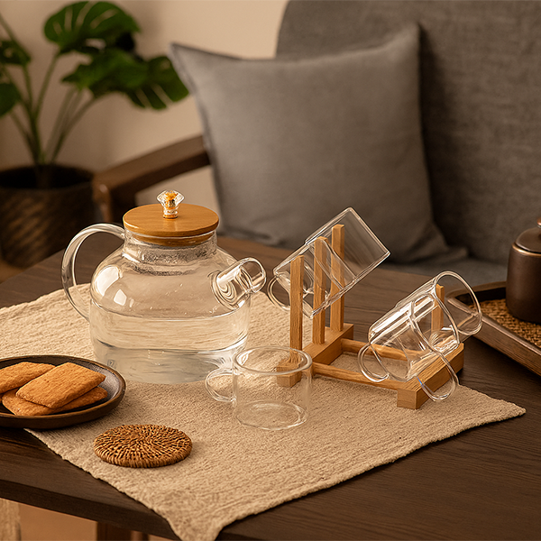 - Vidro borrossilicato, Bambu, Aço inoxidável