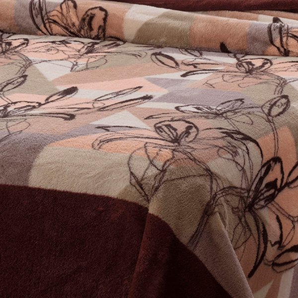 O Cobertor Dyuri Plus Jolitex – Guadaquivir Marrom une conforto extremo com uma estampa moderna que mistura formas geométricas suaves e flores desenhadas em traços finos.