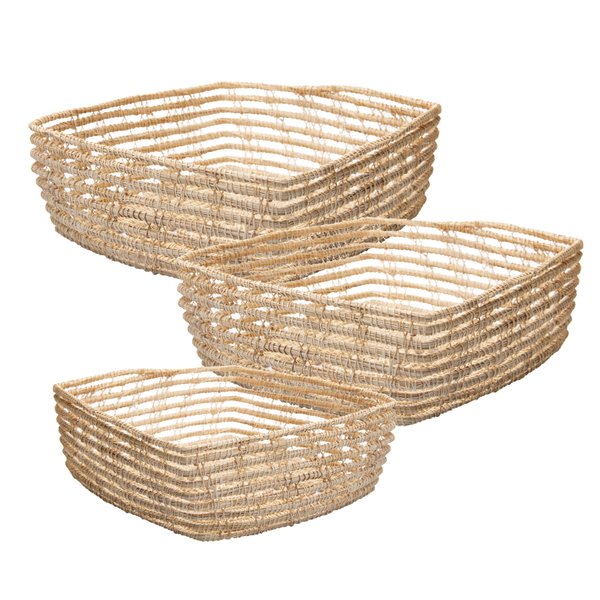 Feitos de fibra natural, esses cestos trazem um design rústico e sofisticado, ideal para qualquer espaço da casa.