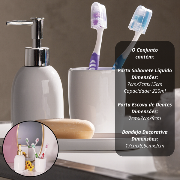 Conjunto 3 Peças Para Banheiro de Cerâmica Lyor - Londres