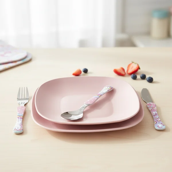 O Conjunto Infantil Simonaggio Trend Kids – Unicórnio foi desenvolvido para estimular a autonomia da criança, tornando cada refeição mais leve, segura e encantadora.