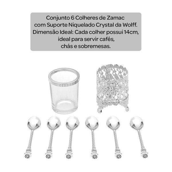 O Conjunto 6 Colheres de Zamac com Suporte Niquelado Crystal da Wolff é a fusão perfeita entre funcionalidade e requinte.