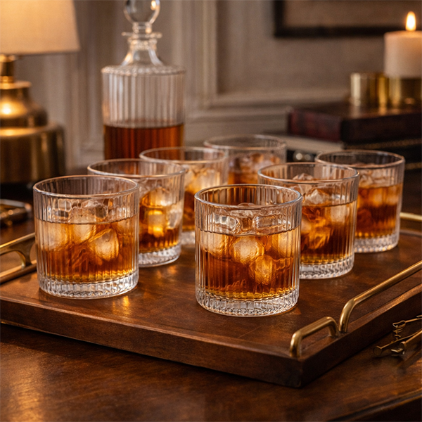 Com design texturizado sofisticado e acabamento transparente, eles elevam desde um simples copo de água até seus drinks favoritos.
