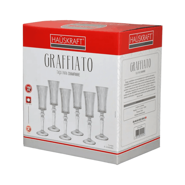 Celebre seus momentos especiais com o Conjunto de 6 Taças de Champanhe de Vidro Hauskraft 150ml - Graffiato. Com um design sofisticado e acabamento em relevo, essas taças trazem um toque de elegância a qualquer ocasião, tornando seus brindes ainda mais memoráveis.