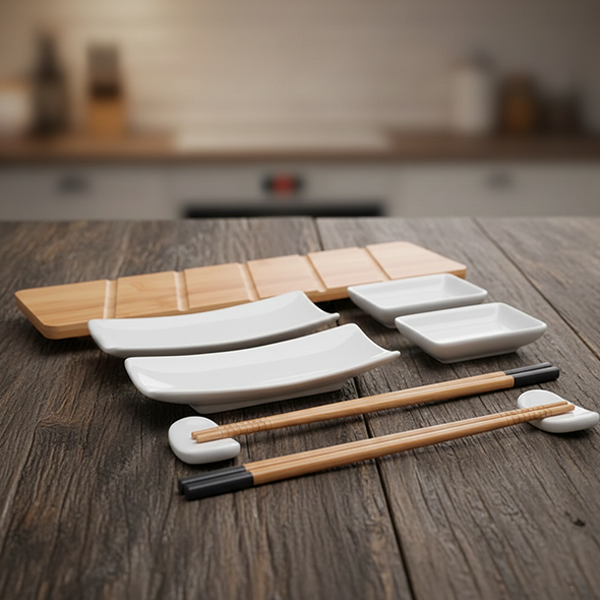 🍣 4 Pratos - Para servir seus sushis e sashimis com elegância.