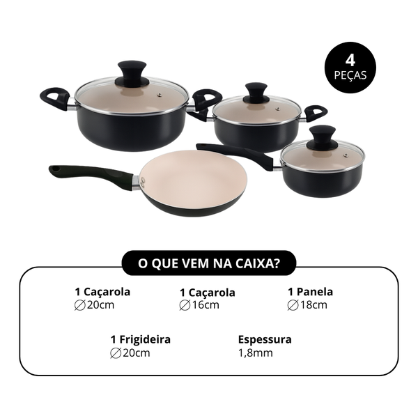 🔥 Garanta agora o seu Conjunto de Panelas Antiaderentes 4 Peças e cozinhe com mais praticidade, elegância e saúde todos os dias!