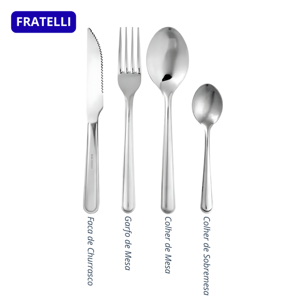 Eleve suas refeições com o Conjunto de Talheres Fratelli Asda Premium 24 Peças, um conjunto sofisticado e durável para o seu dia a dia ou ocasiões especiais.