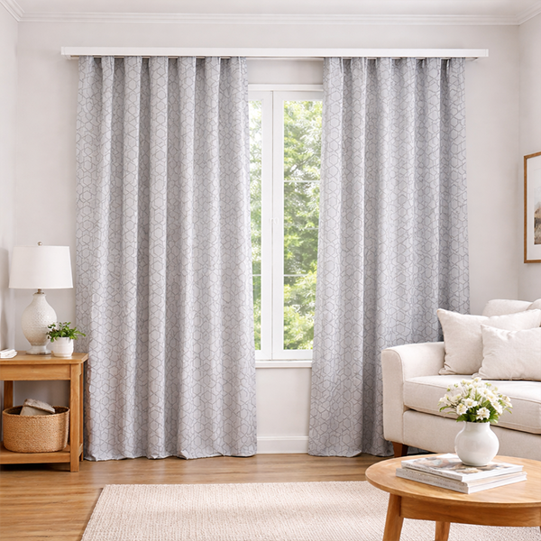 A Cortina Bella Janela Rústica Panamá - Geométrico Titânio Cinza é perfeita para quem deseja um ambiente moderno e aconchegante com um toque de elegância e praticidade.
