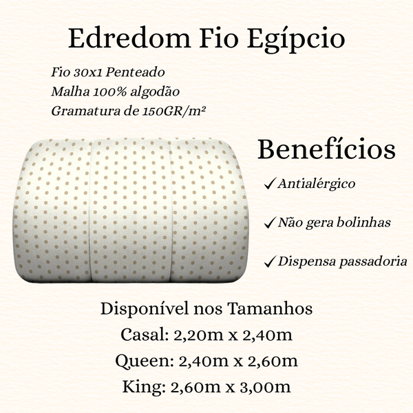 Edredom Fio Egípcio 100% Algodão Premium – Toque Extra Macio, Antialérgico e Ultra Confortável – Cama Soft Descubra o verdadeiro significado de conforto e maciez! Nosso edredom em Fio Egípcio 100% Algodão transforma suas noites em uma experiência de leveza e aconchego inigualáveis.