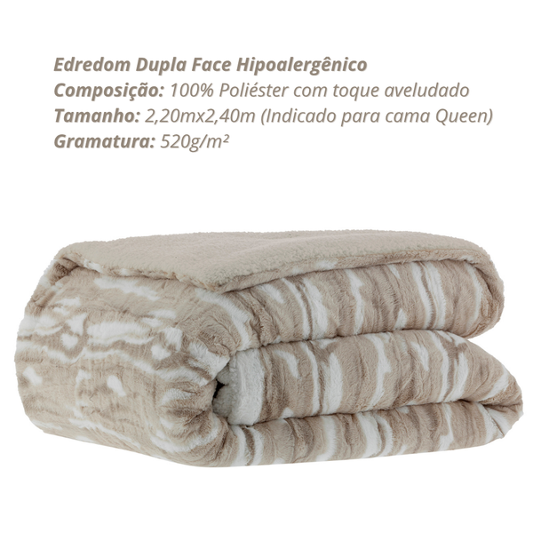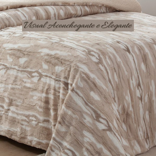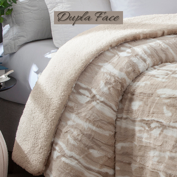 Um lado estampado e o outro liso com textura sherpa – versátil para mudar o visual da cama conforme o seu estilo.