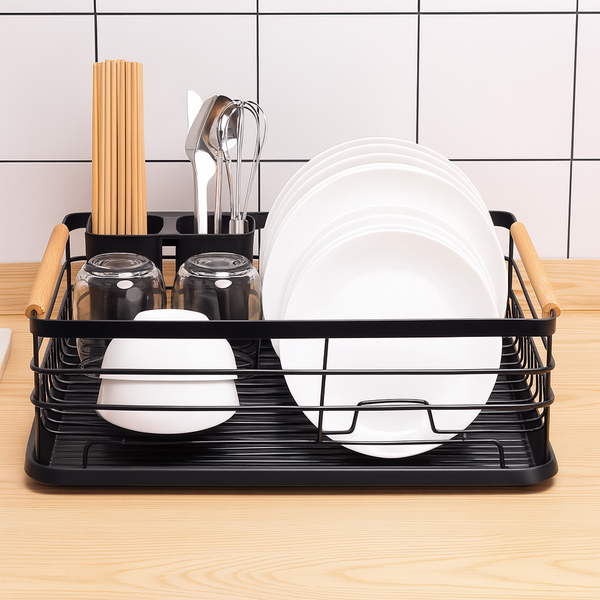 Com capacidade para até 9 pratos, o escorredor também inclui um compartimento móvel para talheres e uma bandeja coletora, ajudando a manter sua pia sempre limpa e organizada.