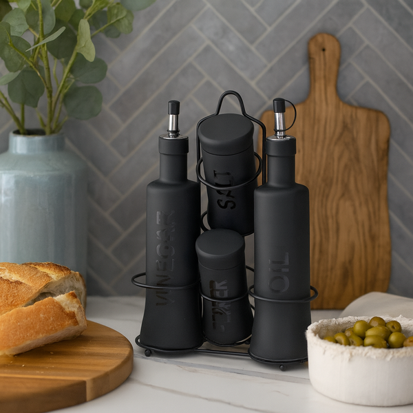 ✔ Conjunto Completo – Perfeito para armazenar azeite, vinagre, sal e pimenta.