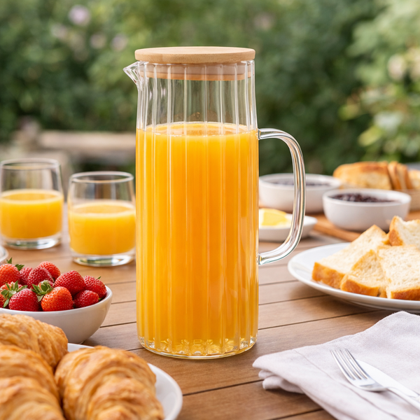 A Jarra de Vidro com Tampa de Bambu Wolff é o acessório perfeito para transformar o momento de servir em algo mais especial.