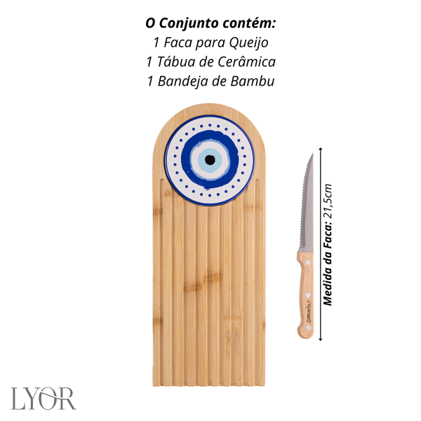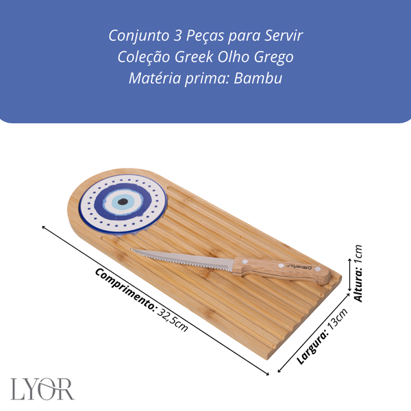 Transforme seus momentos de servir em experiências únicas com o Jogo de Petisqueira 3 Peças Lyor, que une o charme natural do bambu à simbologia do Olho Grego, conhecido por representar proteção, boas energias e equilíbrio.