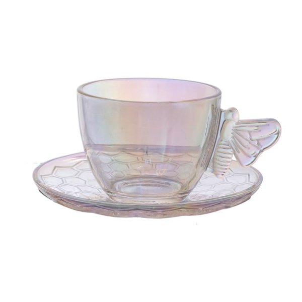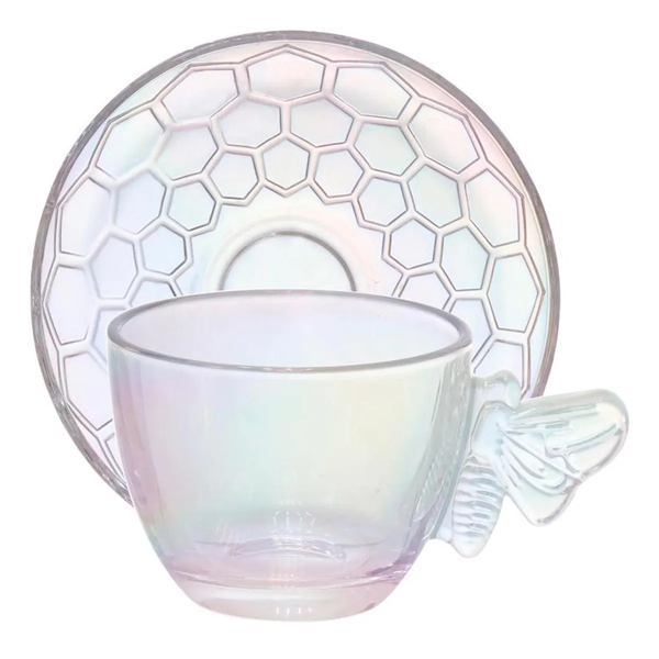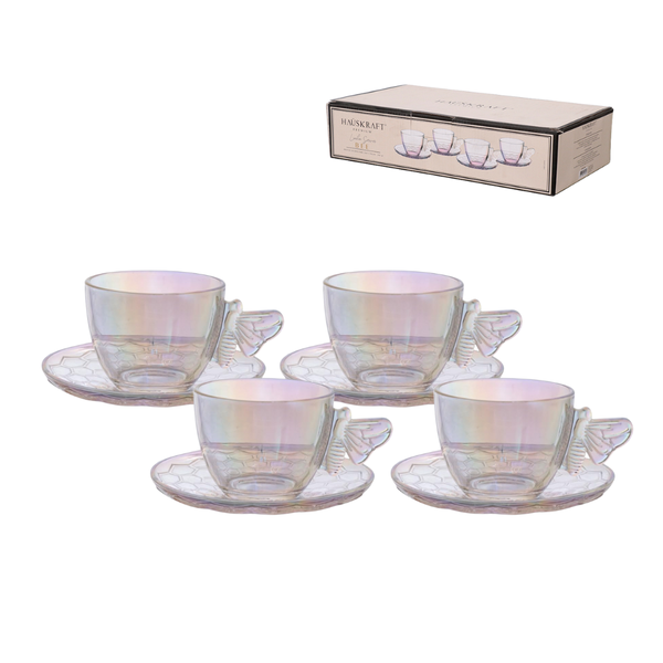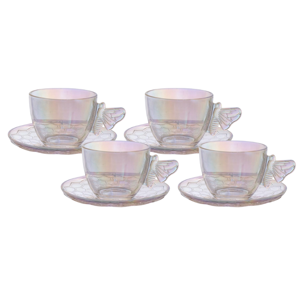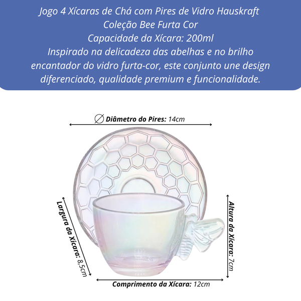Transforme seus momentos de chá em verdadeiras experiências de sofisticação com o Jogo de 4 Xícaras com Pires Hauskraft Bee Furta-Cor.