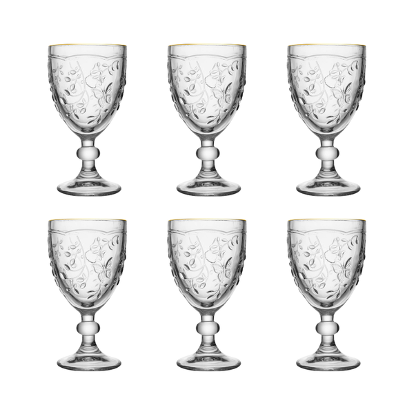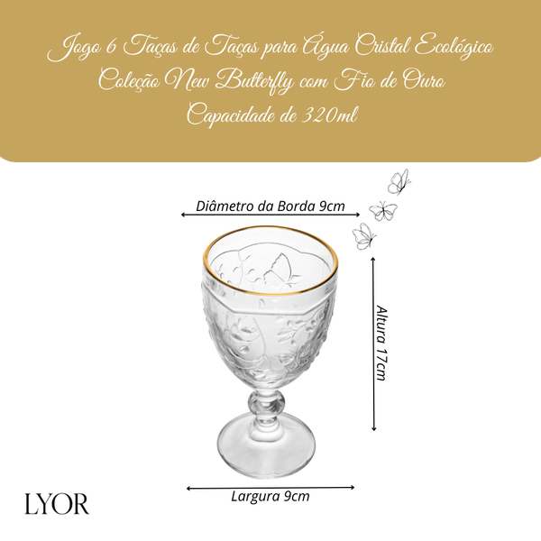Eleve o charme da sua mesa posta com o sofisticado Jogo de 6 Taças para Água Lyor New Butterfly, ideal para momentos especiais e para o dia a dia elegante.