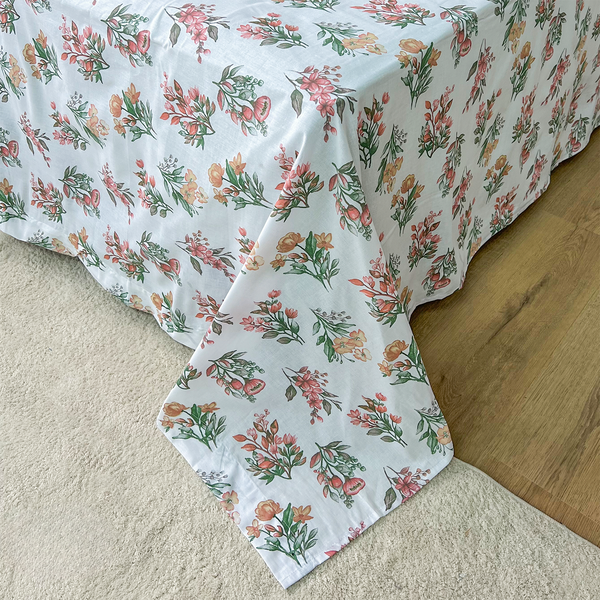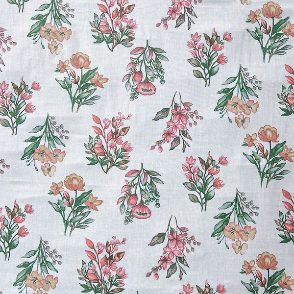- Estampa Floral Romântica: Tons de laranja claro e vermelho sobre fundo branco, trazendo delicadeza e uma sensação de acolhimento ao quarto.