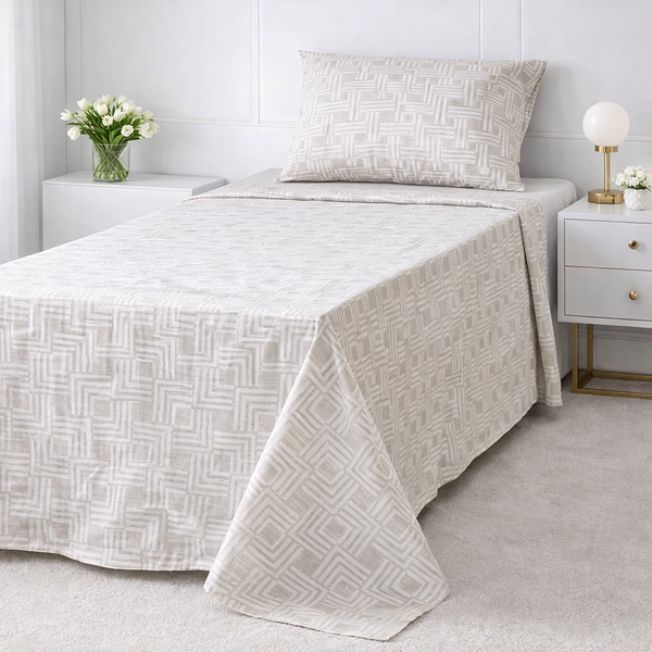 1 Lençol Solteiro (1,60m x 2,20m): Estampa geométrica moderna, perfeita para adicionar um toque de estilo ao quarto.