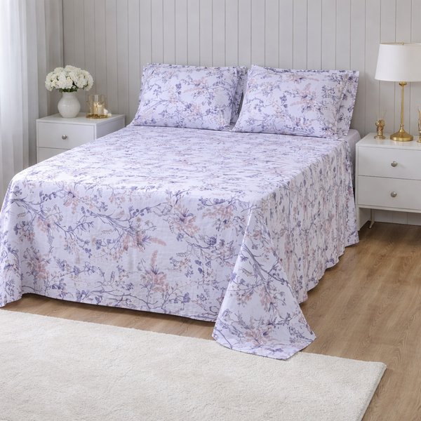 - Design Delicado e Sofisticado: A combinação de flores e galhos delicados com o lençol lilás adiciona um toque de frescor e elegância à decoração do quarto.