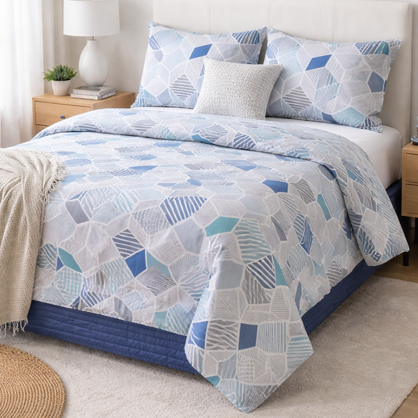 Dê um toque moderno e cheio de estilo ao seu quarto com o Jogo de Lençol 4 Peças Rozac. Confeccionado em 100% algodão, este jogo de lençol é perfeito para oferecer conforto e maciez durante toda a noite. Com um design que combina formas geométricas e listras elegantes, ele é ideal para quem deseja um visual contemporâneo e sofisticado.