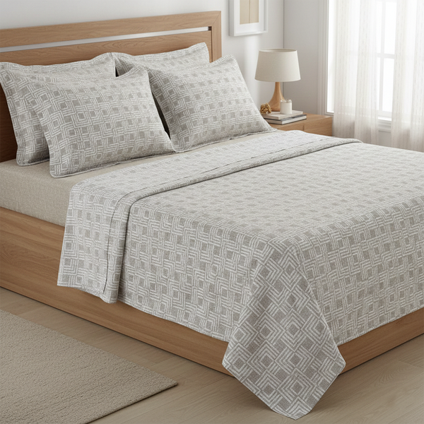 Dê um toque de sofisticação ao seu quarto com o Jogo de Lençol 4 Peças Rozac. Confeccionado em 100% algodão, este jogo proporciona maciez e conforto para um sono reparador. O design moderno, com estampa geométrica e listras em tons de bege, traz um ar contemporâneo e elegante ao ambiente, ideal para quem deseja aliar estilo e conforto.