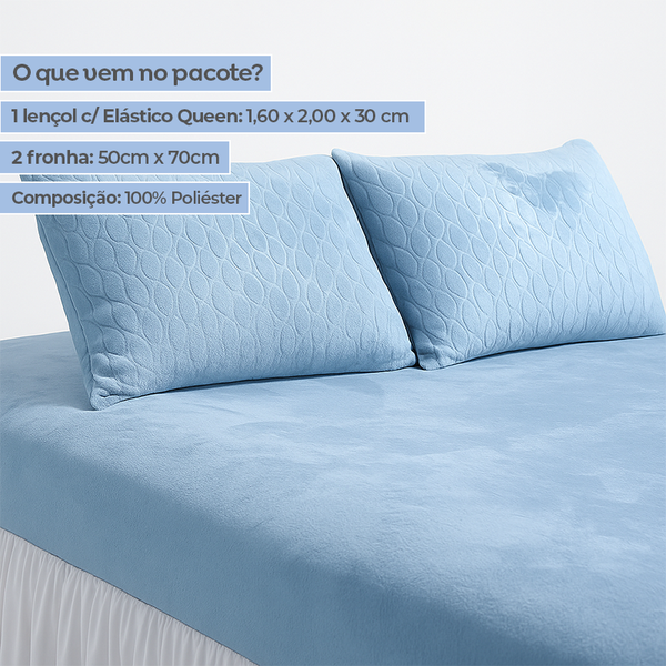 Feito com 100% poliéster de alta qualidade, esse jogo de lençol possui um toque peluciado irresistível, perfeito para os dias mais frios.