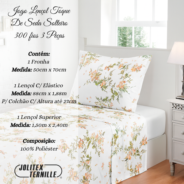 Transforme suas noites em momentos de puro conforto e elegância com o Jogo de Lençol Toque de Seda Floral 300 Fios Jolitex.