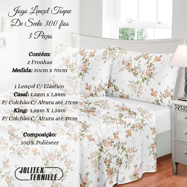 ✨ Renove seu enxoval com o Jogo de Lençol Floral 300 Fios Jolitex e viva noites ainda mais especiais.