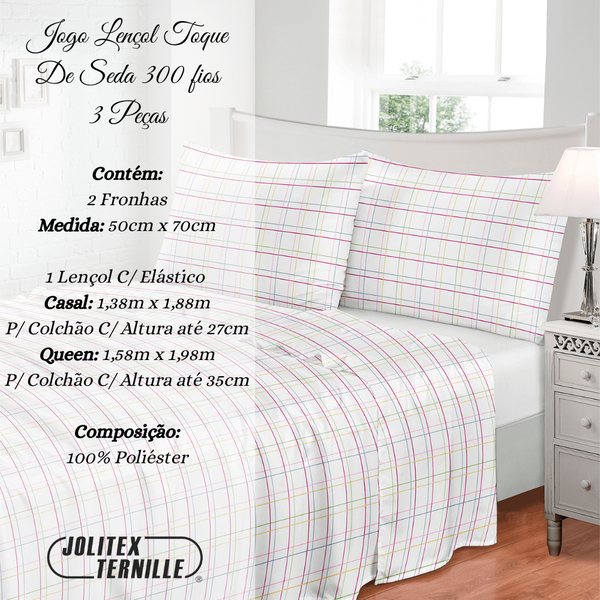 ✨ Garanta o Jogo de Lençol Toque de Seda Quadriculado Jolitex e transforme suas noites em uma experiência inesquecível.