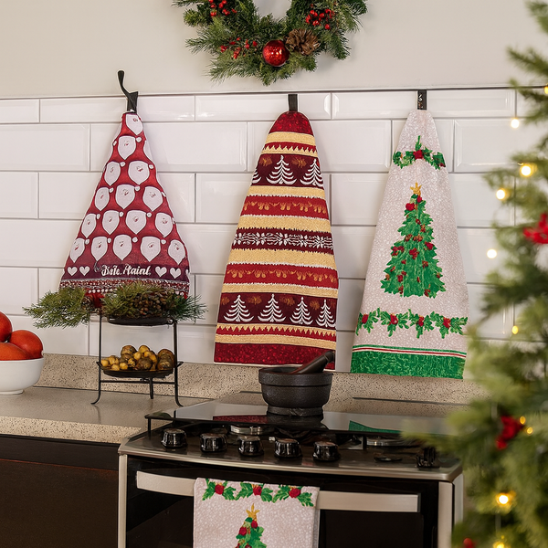 - Kit com 3 Panos de Prato: Cada pano com 40x60 cm, incluindo 3 estampas diferentes, para renovar a decoração de sua cozinha e atender às diversas necessidades de uso durante o Natal.