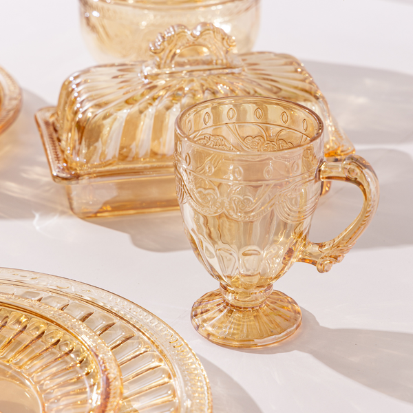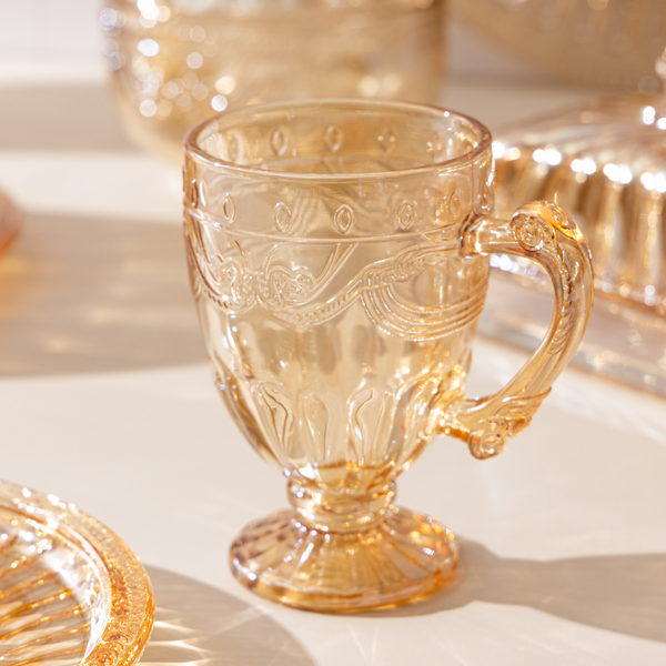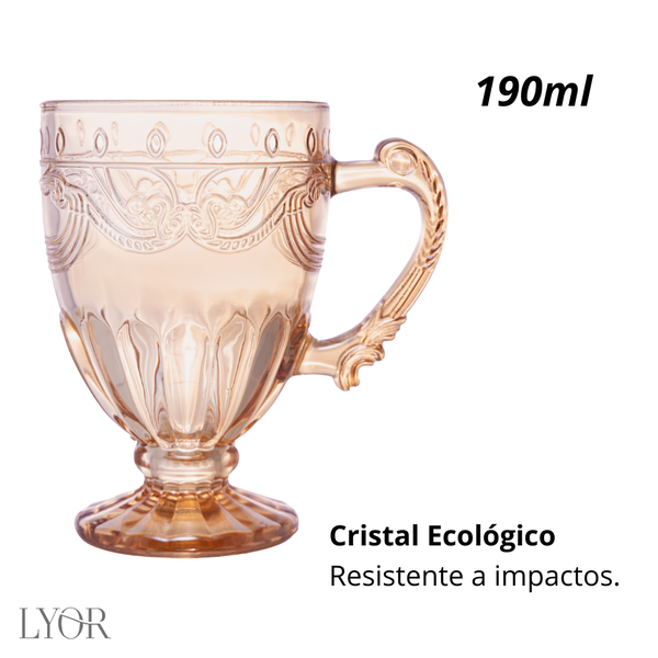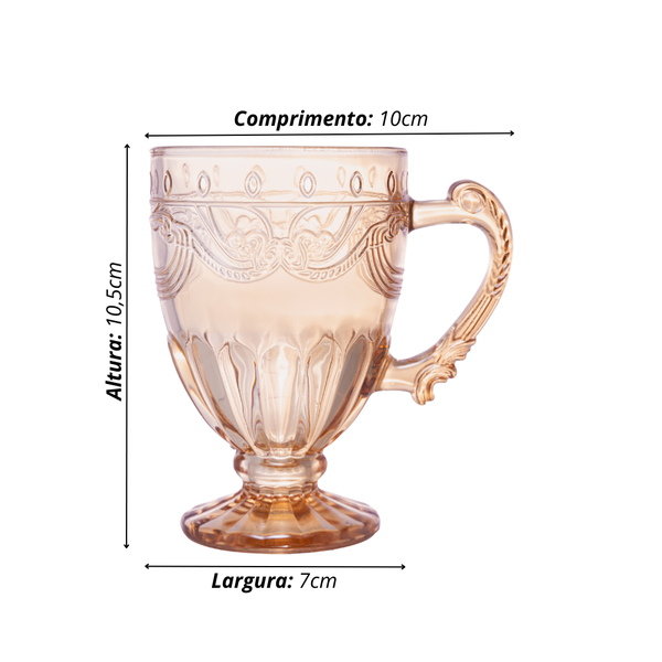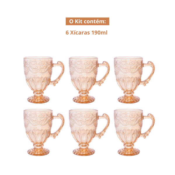 O Kit com 6 Xícaras Imperial Âmbar Lyor combina um design clássico em tom âmbar, acabamento em relevo e cristal ecológico resistente, perfeito para quem ama uma mesa posta elegante e acolhedora.