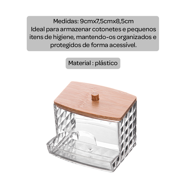 🧼 Higiene e organização: Mantenha cotonetes e algodões protegidos e sempre prontos para uso.
