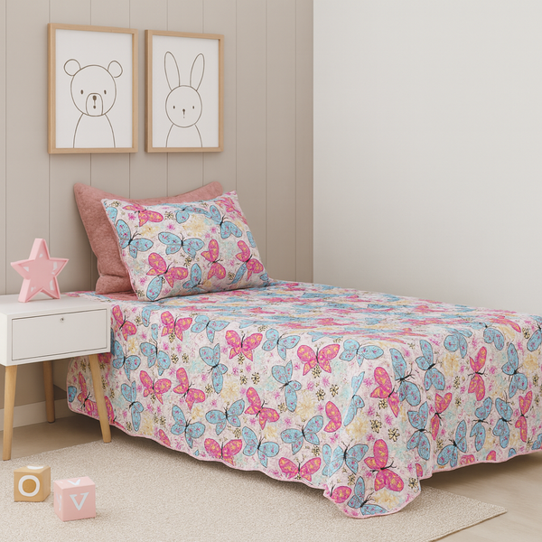 Adquira já o Kit Colcha Corttex Paris Dupla Face - Borboletas e transforme o ambiente com conforto, praticidade e muito encanto!