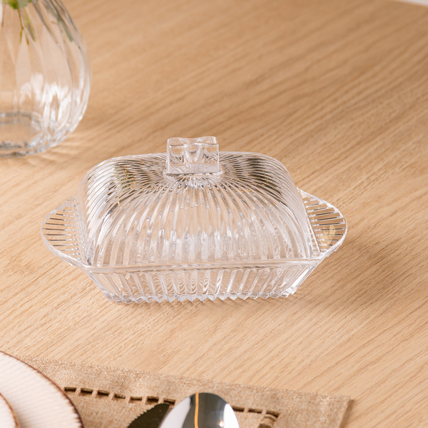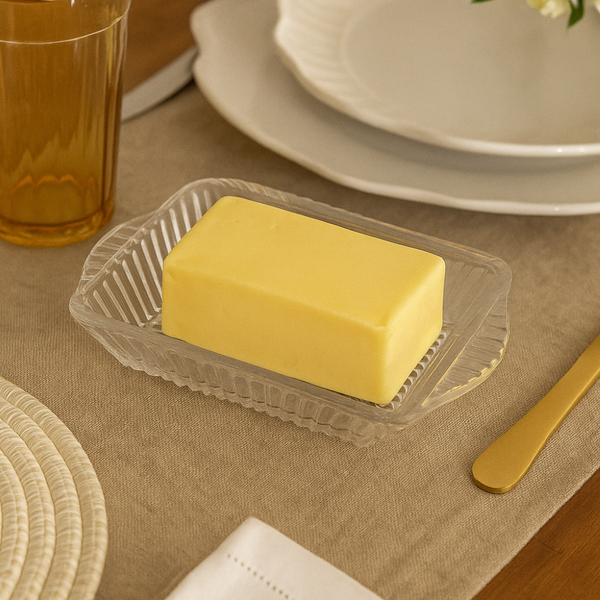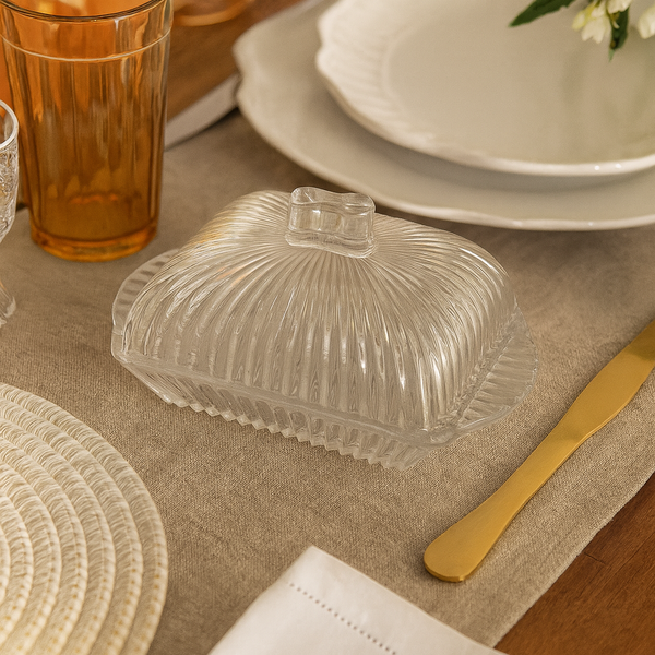 A Manteigueira com Tampa de Cristal – Linha Renaissance Lyor combina o charme do vidro canelado com a praticidade do formato retangular, protegendo o alimento e valorizando sua mesa posta em qualquer ocasião.