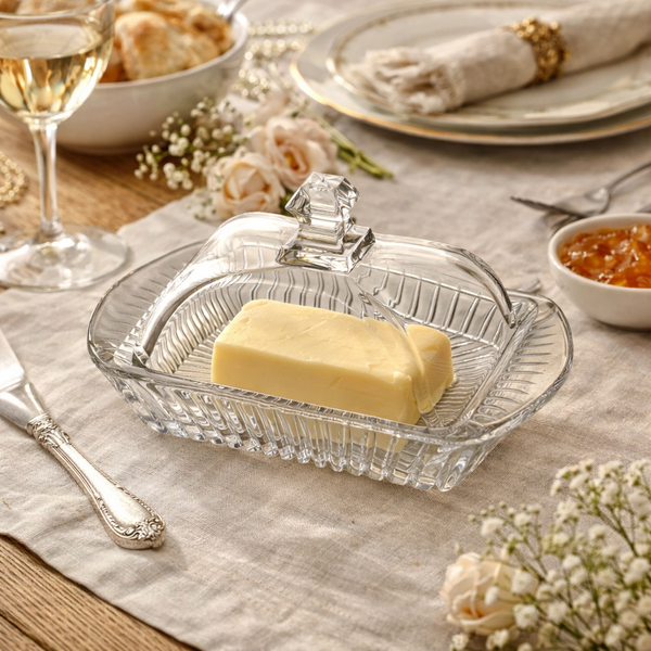- Durabilidade e Qualidade: Feita com vidro de alta resistência, a manteigueira é uma peça durável e que mantém o visual elegante com o uso contínuo.