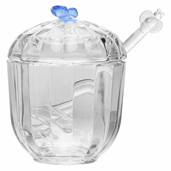 Produzida em cristal de alta qualidade, possui tampa com detalhe de borboleta e acompanha pegador, garantindo praticidade, higiene e um toque decorativo encantador.