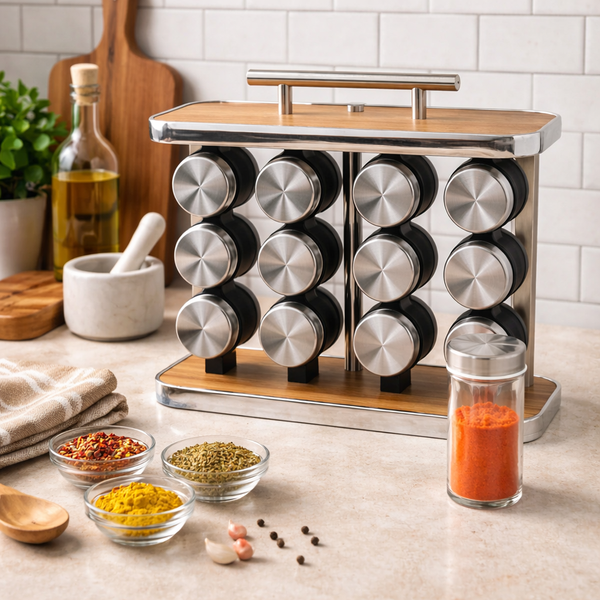 Adquira o Porta-Condimentos em Inox com Suporte Hauskraft e tenha sempre seus temperos favoritos ao alcance das mãos!
