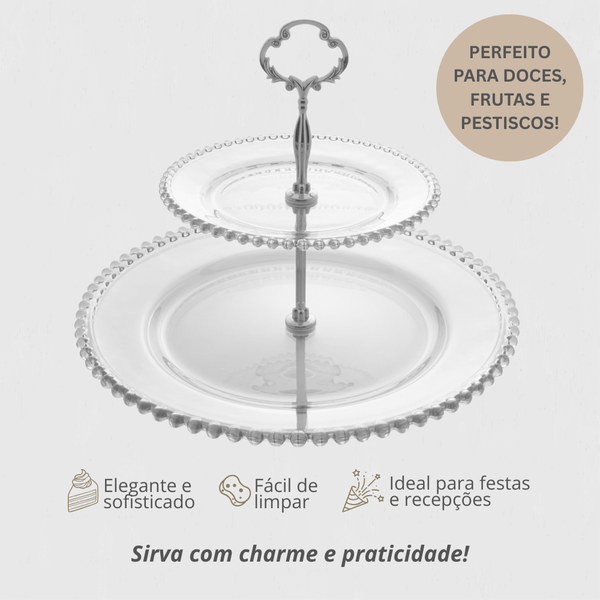 Com dois níveis, este prato não apenas valoriza a disposição dos alimentos, mas também torna qualquer evento mais sofisticado e especial.