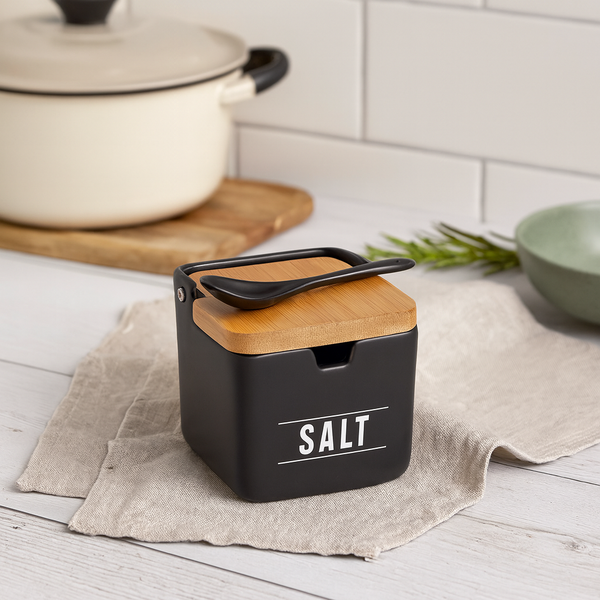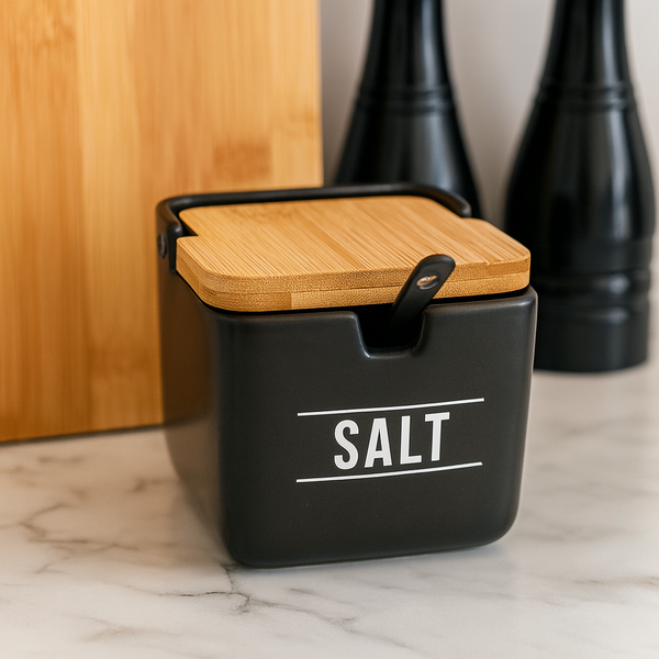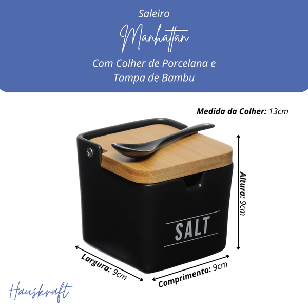 🌟 Garanta agora o seu Saleiro Hauskraft Manhattan com Colher de Porcelana e Tampa de Bambu e transforme a rotina da sua cozinha em um momento de puro estilo e praticidade!