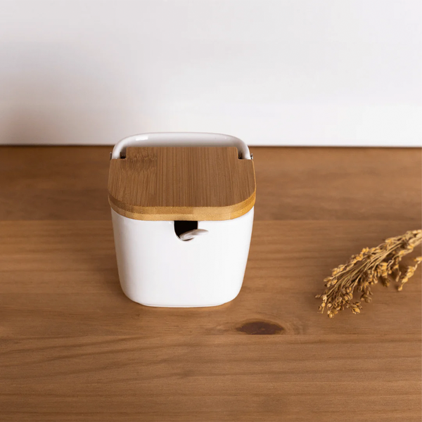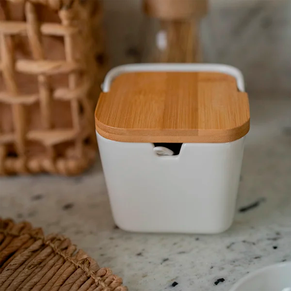 ✔️ Tampa de bambu natural – ajuda a proteger o sal contra umidade