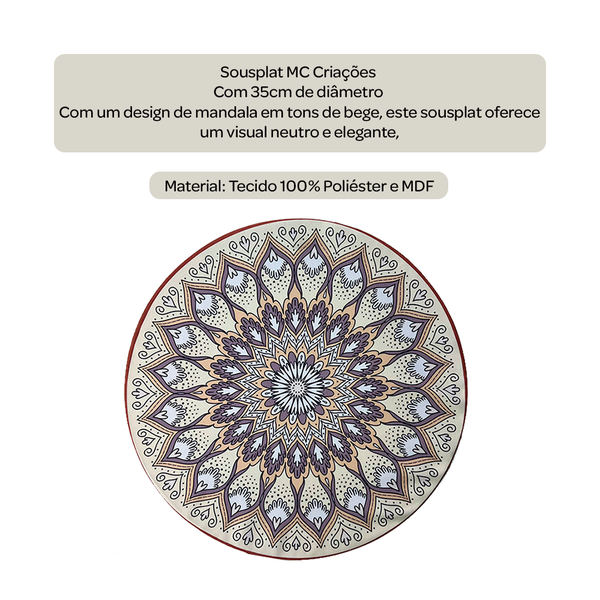 Garanta já o Sousplat em MDF e Tecido MC Criações - Mandala 01 Bege e eleve a elegância e o estilo das suas refeições!