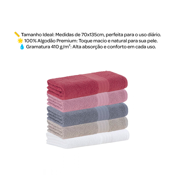 Produzida em 100% algodão de alta qualidade, ela possui gramatura de 410 g/m², garantindo uma absorção eficiente e um toque macio à pele.