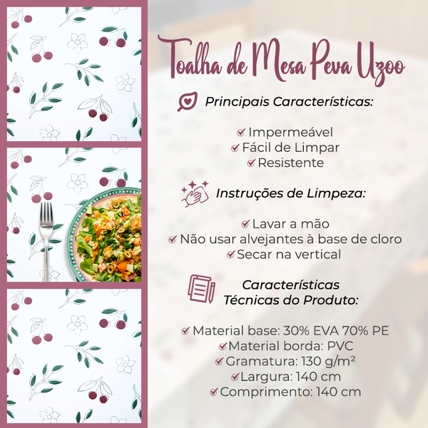 A Toalha de Mesa Pronta com flores delicadas e pequenas frutas é perfeita para quem busca transformar a sua mesa em um verdadeiro convite à alegria e ao bem-estar.
